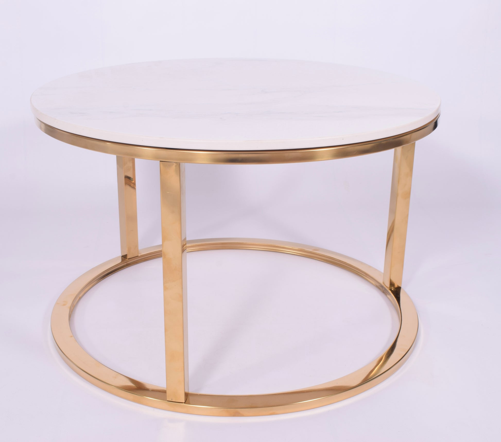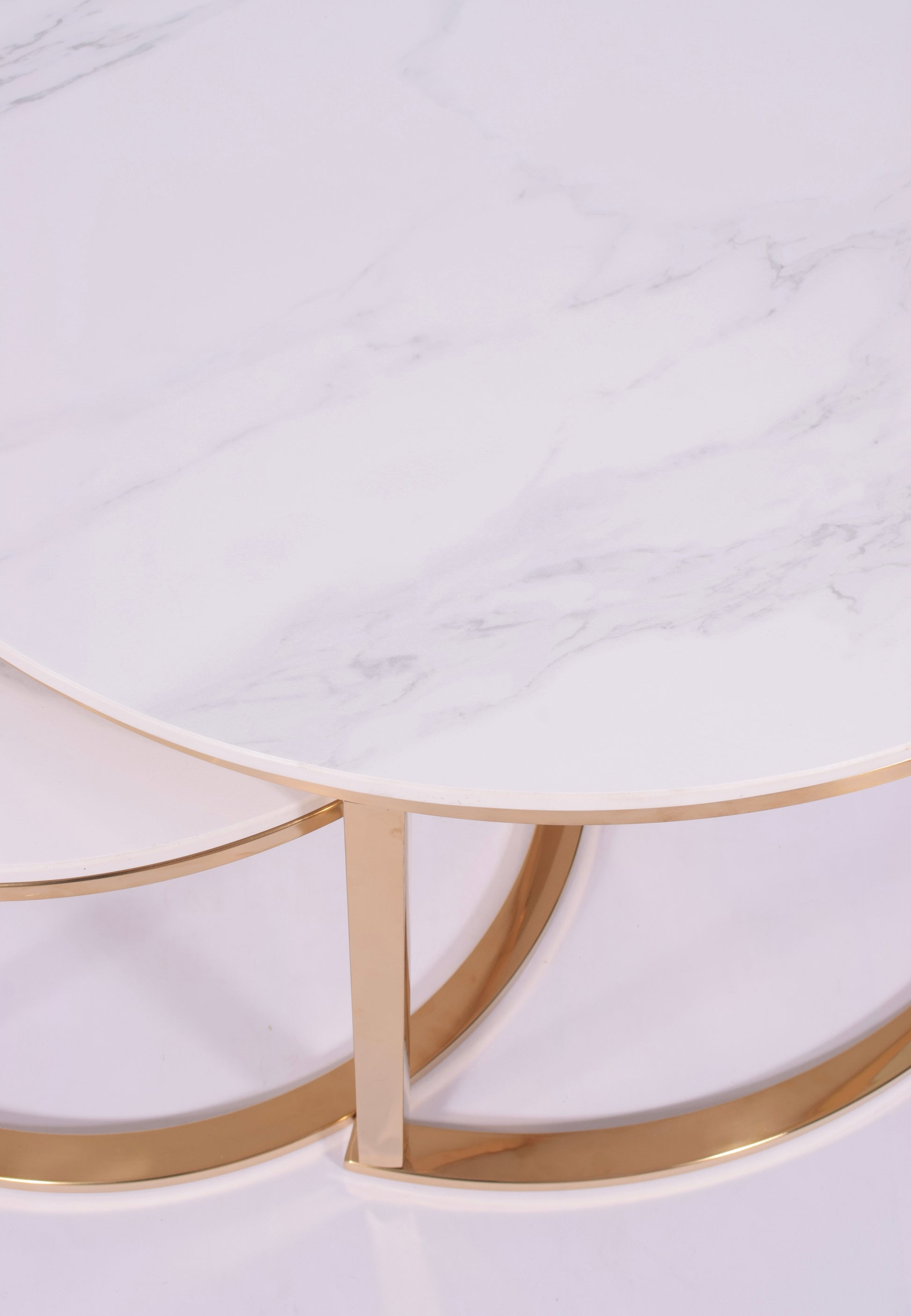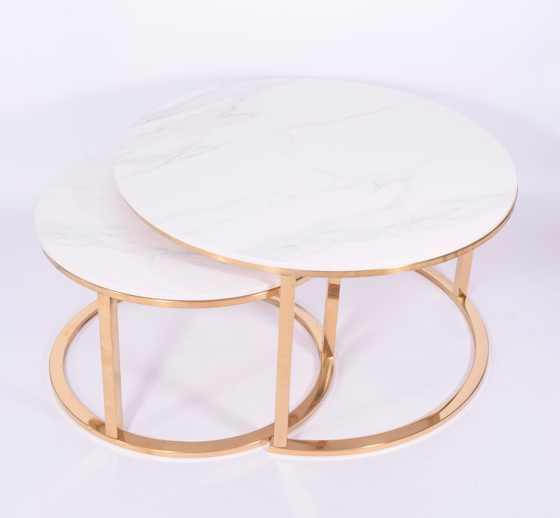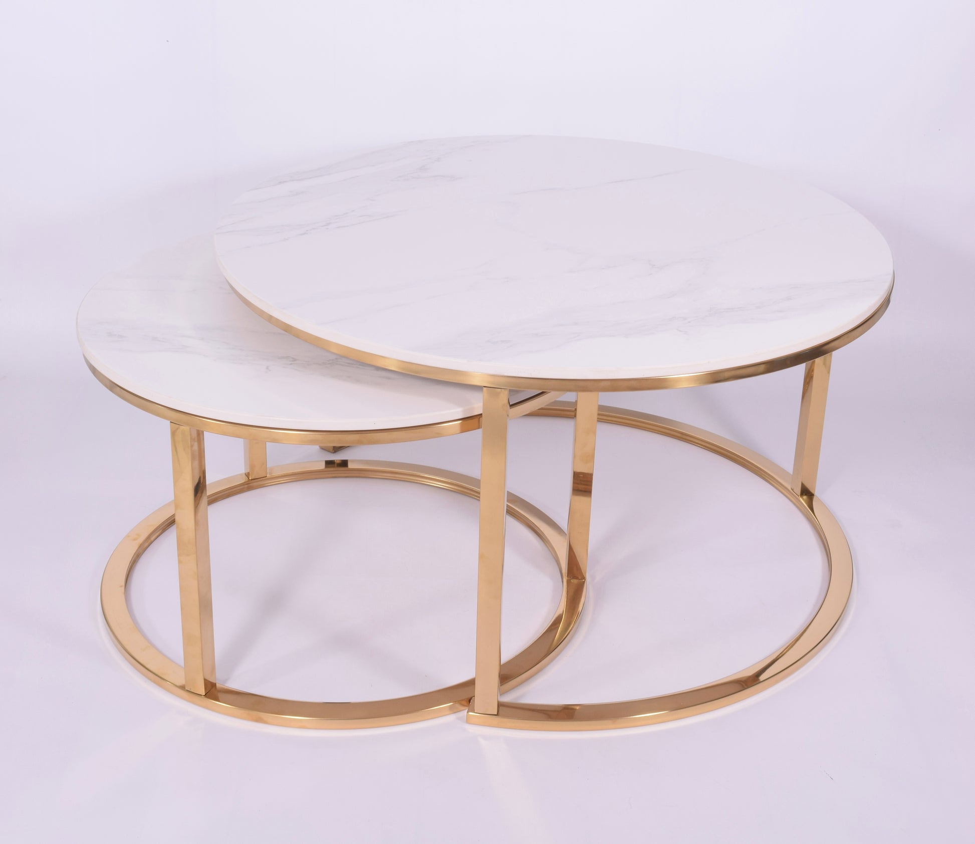 Zestaw 2 stolików kawowych glamour | Kamień marmur | Złote nogi | 80CM/60CM